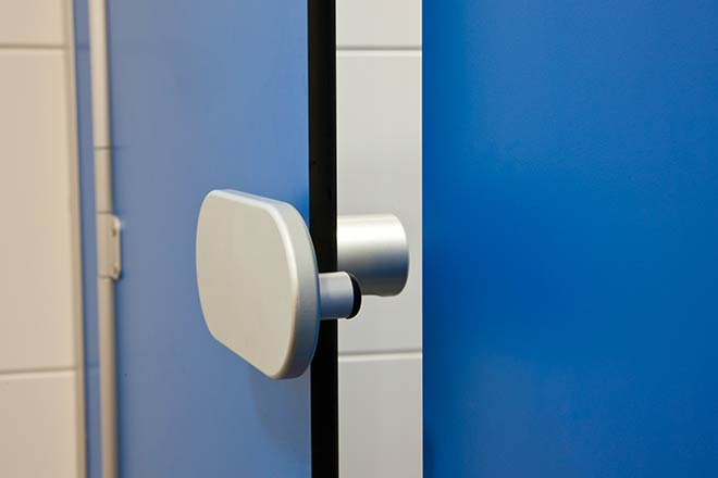 Sanitär-Trennwände - System NA 13 Kita Anschrift Caritas Kita Westend Wetzlar Ernst-Leitz-Str. 59 35578 Wetzlar Bauvorhaben Umbau/Renovierung Zeitraum Frühjahr 2012 Leistungen Fertigung und Montage von Kita Sanitär-Trennwänden Anzahl 2 x Kabinen Besonderheit bandseitige Klemmschutzprofile